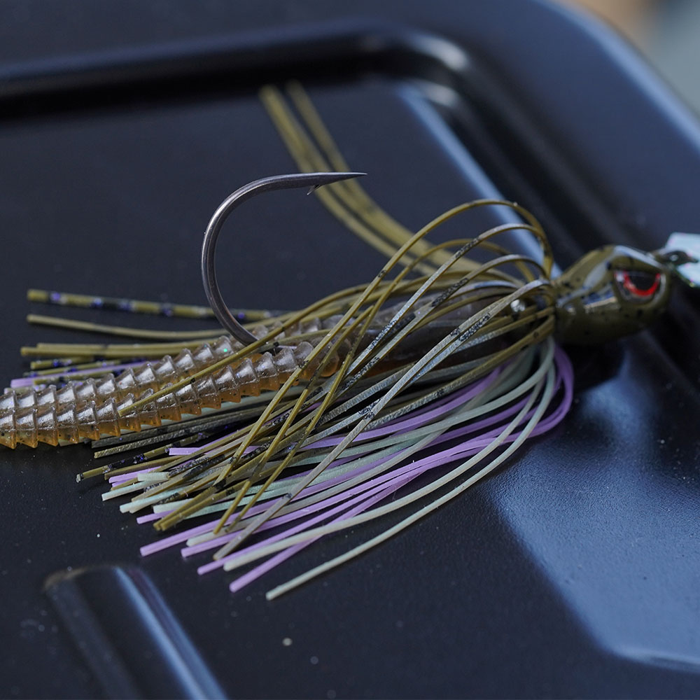 Der SPRO Cover Jumper ist ein Bladed Jig, der sauber anläuft und sofort Druck macht. Das große, abgestimmte Blade sorgt schon bei langsamer Führung für eine spürbare Vibration, was gerade bei trübem Wasser oder Wind ein Vorteil ist. Verbaut ist ein besonders großer und stabiler Gamakatsu Nano Alpha Jig Hook, der auch bei kräftigen Bissen sicher greift und genug Reserven im Drill bietet. Der handgebundene Silikon Skirt spielt sauber im Wasser und jeder Köder kommt mit einem farblich passenden 4 Inch Kick Back Trailer, der das Profil abrundet. Das Gewicht ist unten am Kopf gekennzeichnet. Erhältlich ist der Cover Jumper in 3/8 oz, das sind ca. 10,5 g, sowie in 1/2 oz mit ca. 14 g. Chatterbaits wie dieser werden vor allem über Krautfeldern, an Kanten, im flacheren Wasser und entlang von Strukturen gefischt, wo sie viel Druck machen und aktive Räuber gezielt triggern.